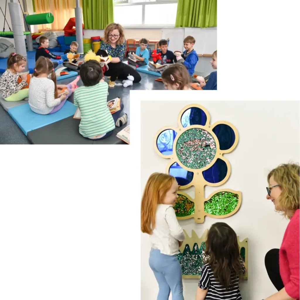 To wyjątkowa przestrzeń sensoryczna, stymulująca wszystkie zmysły dziecka – poprzez światło, dźwięk, dotyk i ruch. Sala wspiera rozwój emocjonalny i poznawczy, a wszystkie urządzenia są certyfikowane i dostosowane do potrzeb najmłodszych.